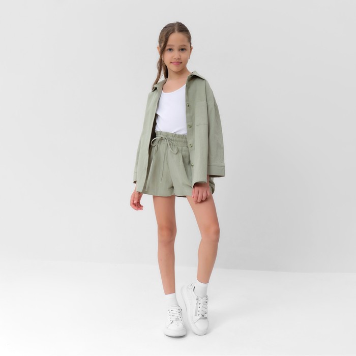 Костюм для девочки (рубашка и шорты) MINAKU, оливковый, рост 146-152 см