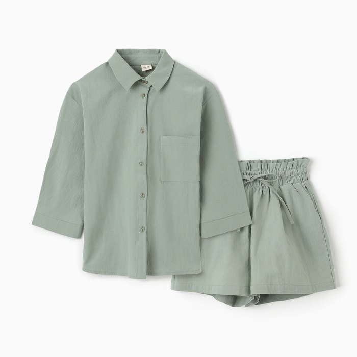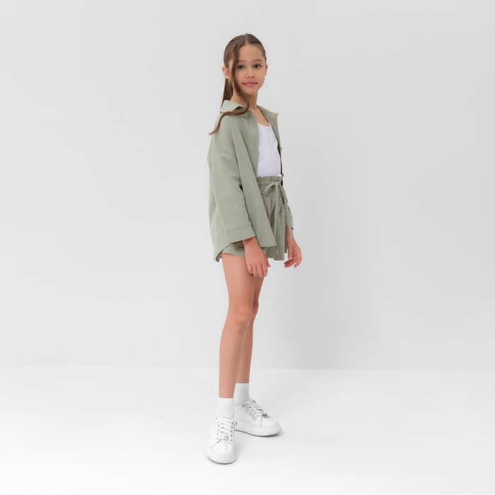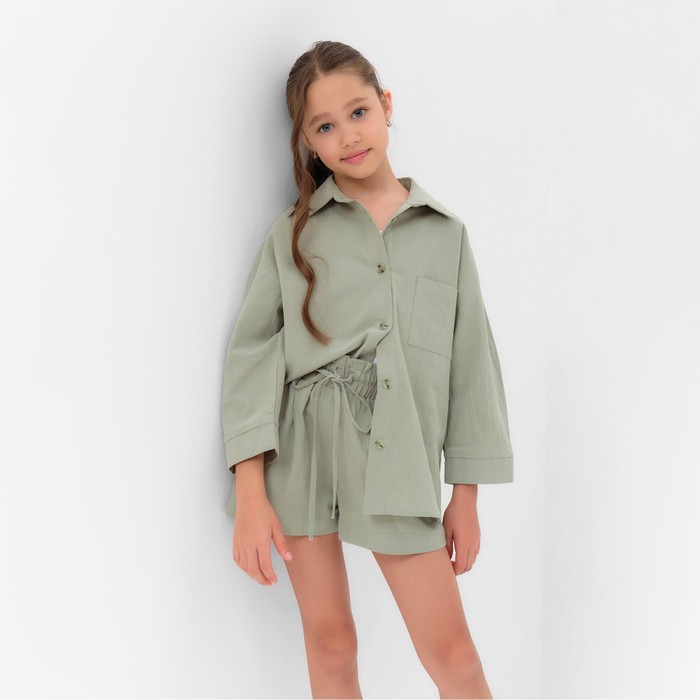 Костюм для девочки (рубашка и шорты) MINAKU, оливковый, рост 158-164 см — Характеристики