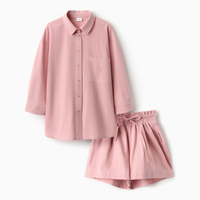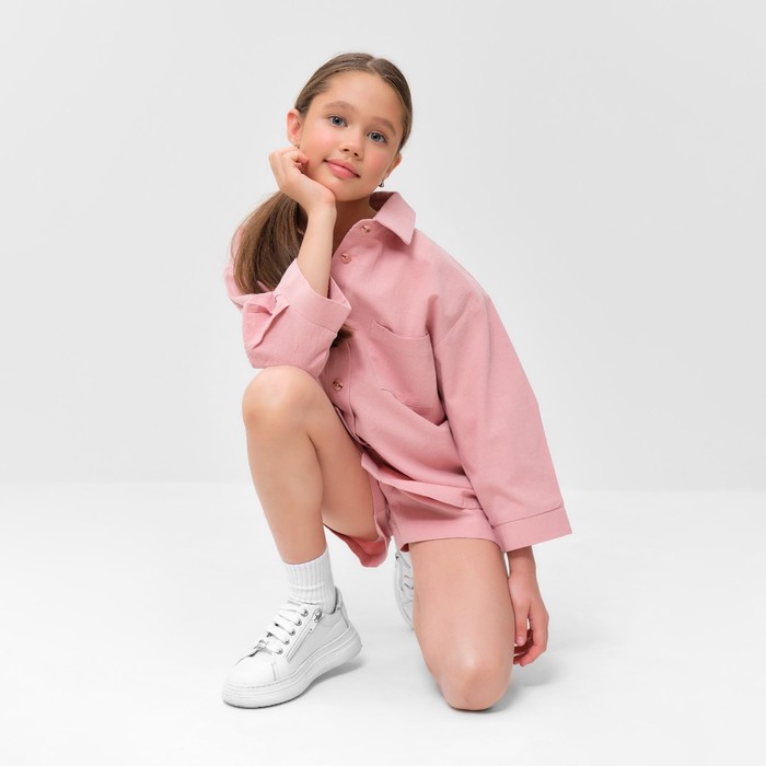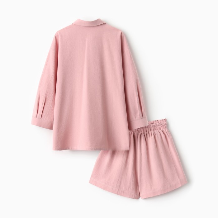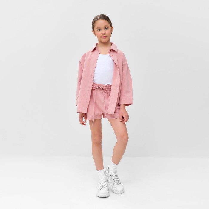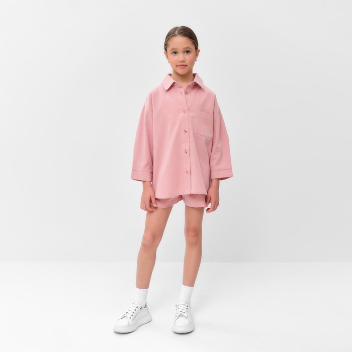 Костюм для девочки (рубашка и шорты) MINAKU, пудрово-розовый, рост 122-128 см — Характеристики