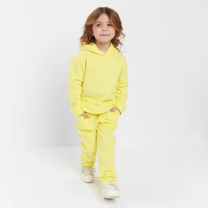 Костюм для девочки (толстовка, брюки) с НАЧЁСОМ, цвет жёлтый, рост 116 см — Характеристики