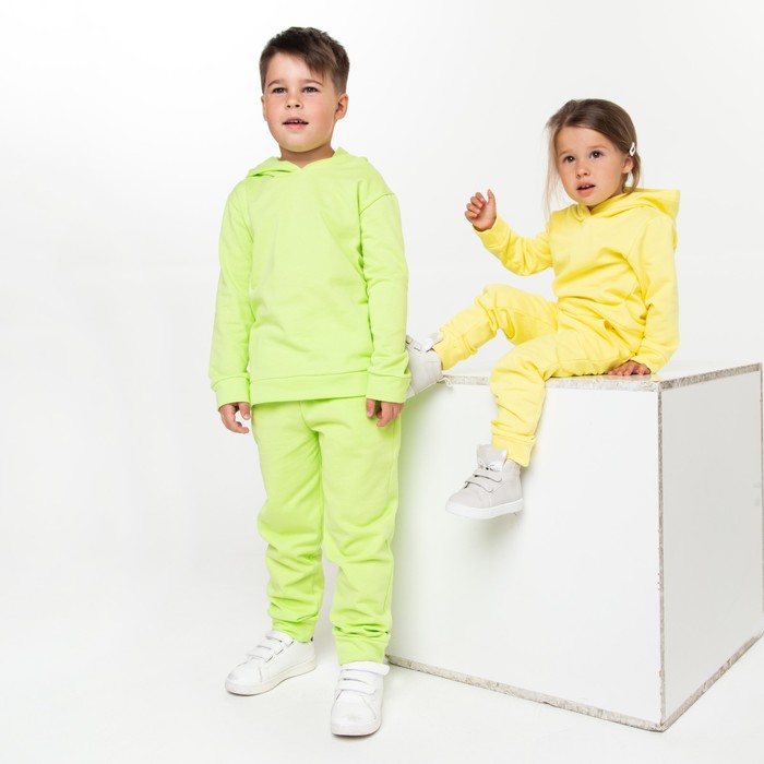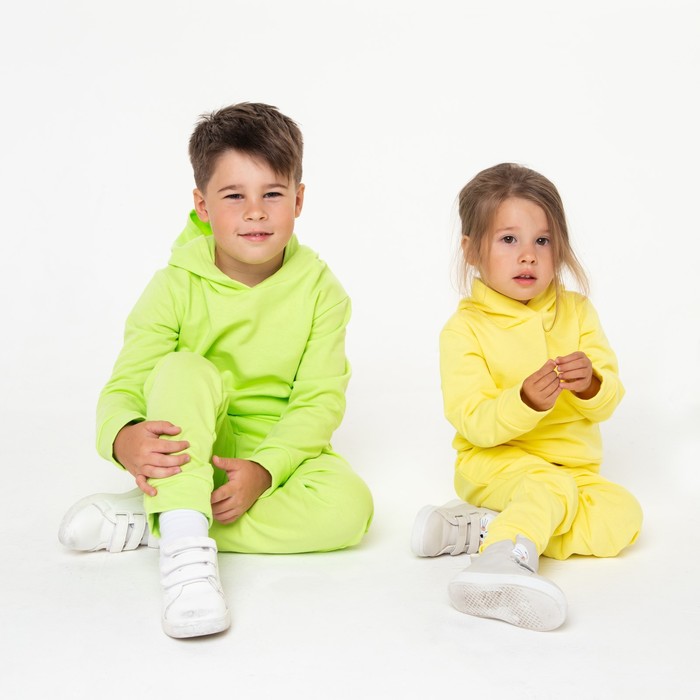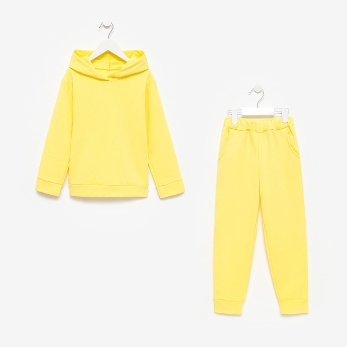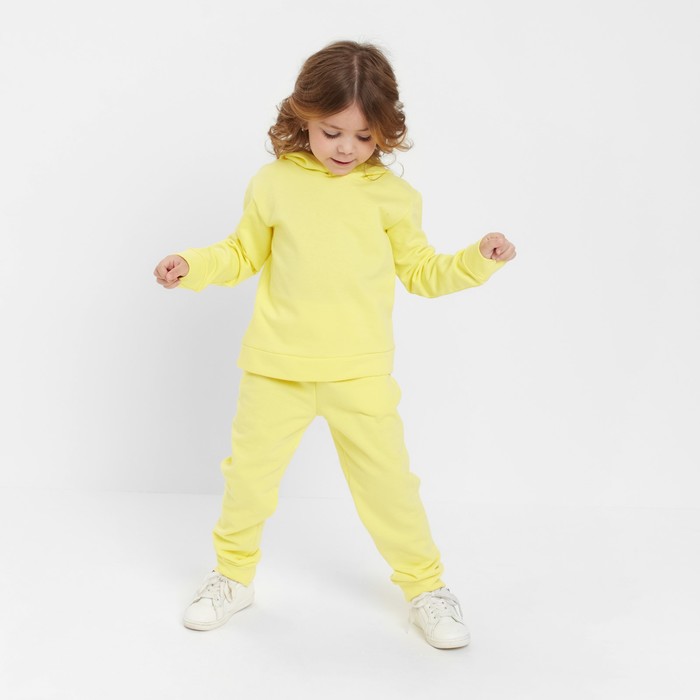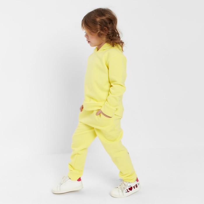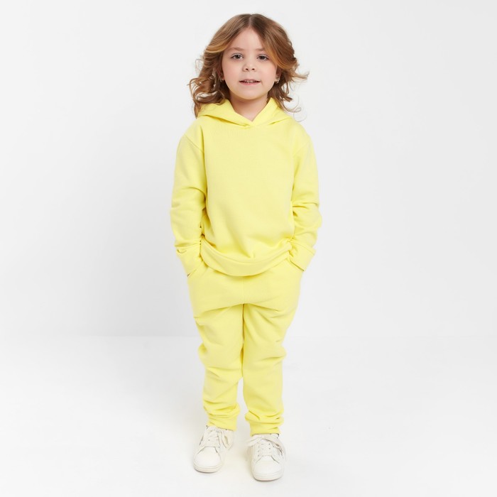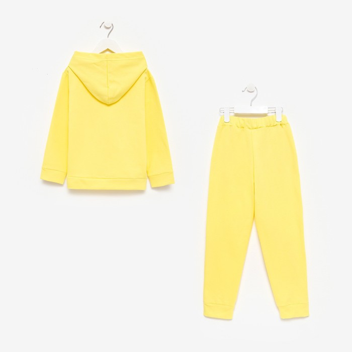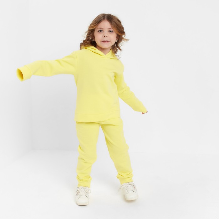Костюм для девочки (толстовка, брюки) с НАЧЁСОМ, цвет жёлтый, рост 128 см — Характеристики