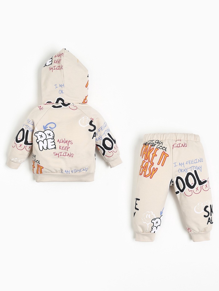 Повседневный стиль для маленьких исследователей! Детский комплект «Граффити» — это практичный набор из мягкой толстовки и брюк для мальчико вроста 62–68 см. Комплект создает комфорт для активного движения в прохладную погоду.
