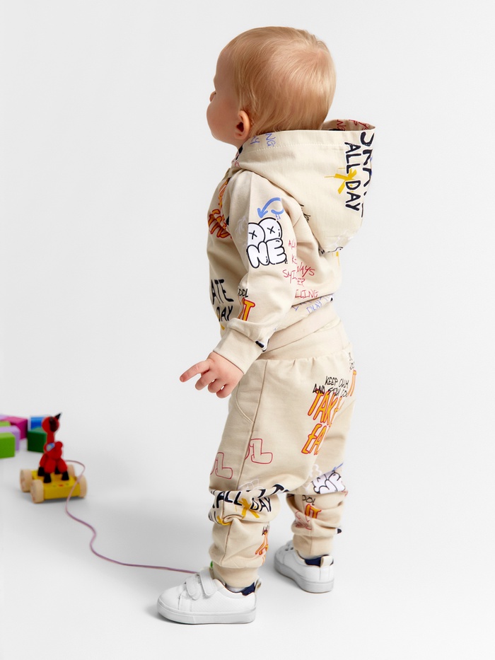 Стиль, который растёт вместе с ребёнком! Детский комплект «Граффити» (толстовка и брюки) — это практичный и модный набор для маленьких непосед. Комплект создан для активных игр и ежедневных прогулок в прохладную погоду.