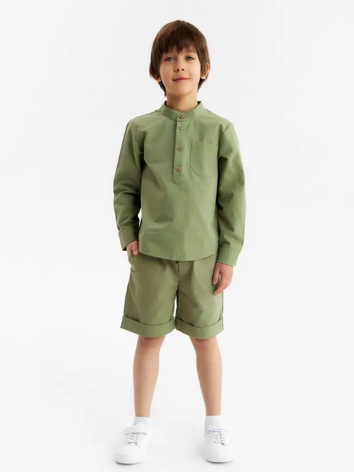 Костюм для мальчика (Рубашка и бермуды) MINAKU, цвет хаки, рост 128 см — Характеристики