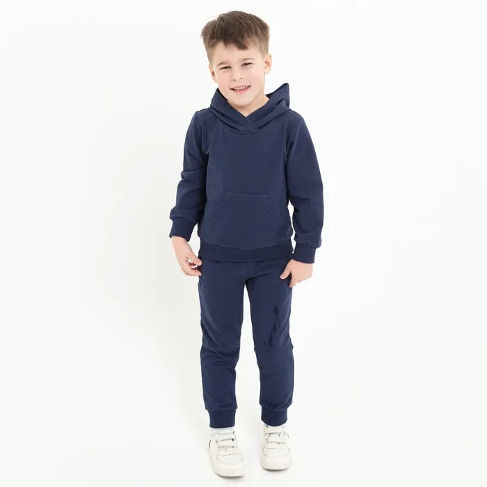 Костюм для мальчика (толстовка/брюки), цвет тёмно-синий, рост 110 — Характеристики