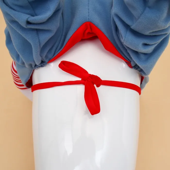 Удобная посадка: Костюм имеет свободный крой, что позволяет собаке легко двигаться и играть. Эластичные манжеты на конечностях и пояс гарантируют надежную фиксацию, не сковывая движений.