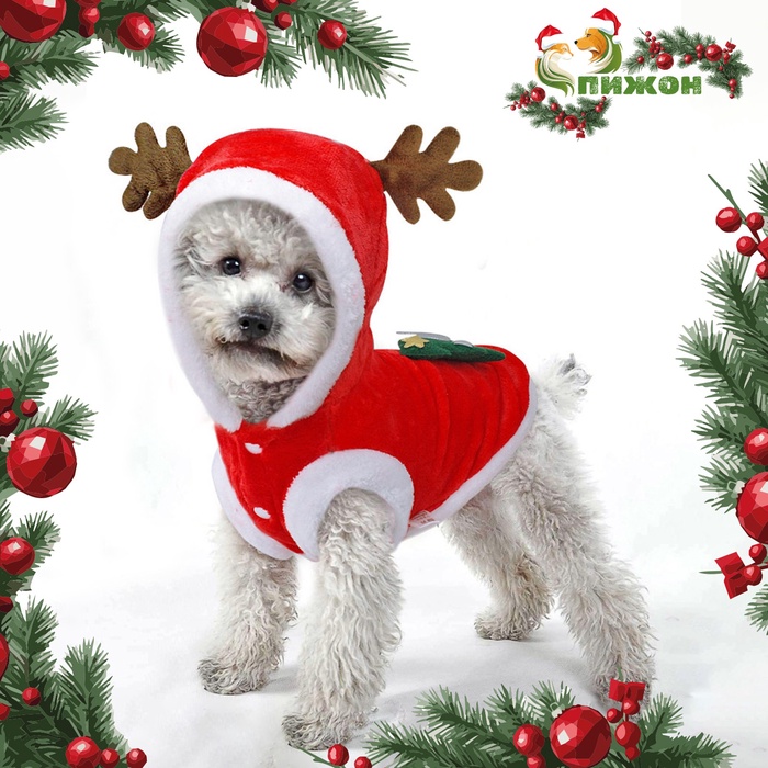 Костюм для животных "Новогодний олень", размер S (ДС 28, ОГ 37, ОШ 18 см, вес 3-5кг)