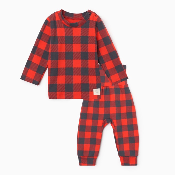 Костюм: джемпер и брюки Крошка Я "Клеточка", рост 80-86 см, красный — Характеристики