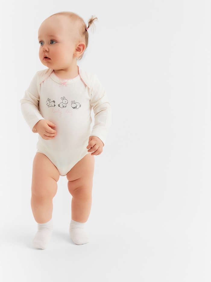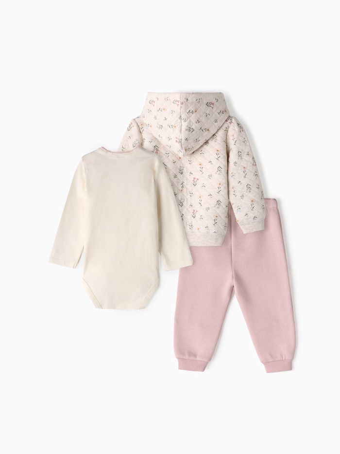 Костюм (джемпер, штанишки, боди) Крошка Я, рост 74-80 см, бежевый/розовый — Характеристики