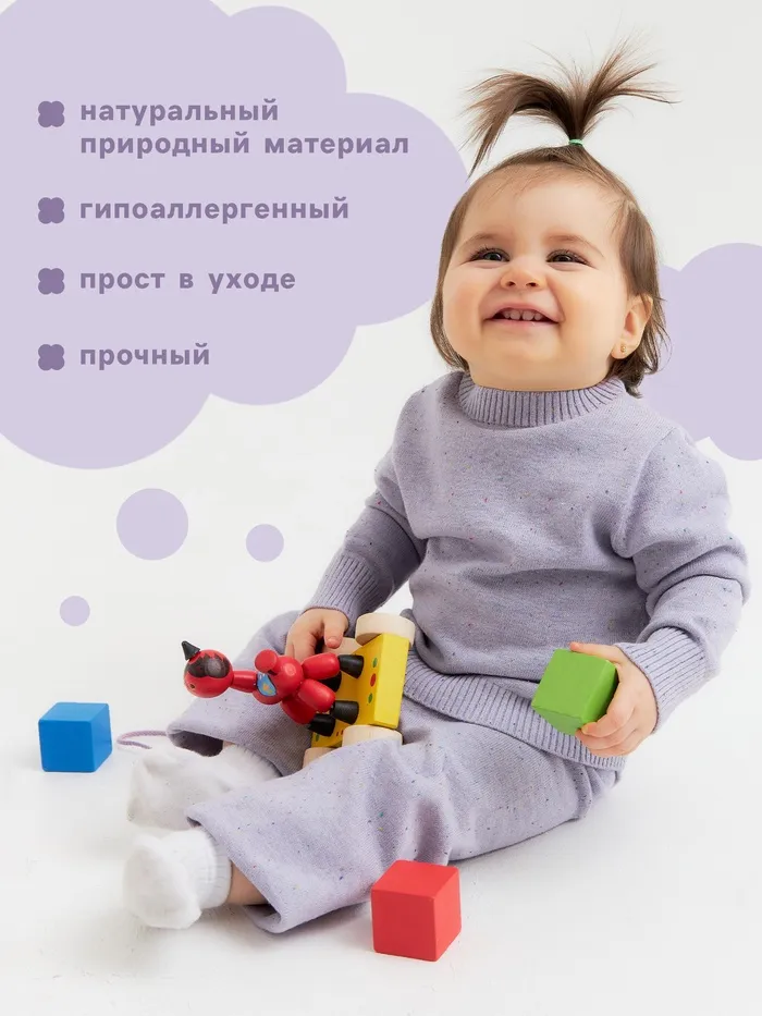 - Комфорт для малыша: Мягкий материал нежно облегает кожу, обеспечивая тепло и удобство в течение всего дня.