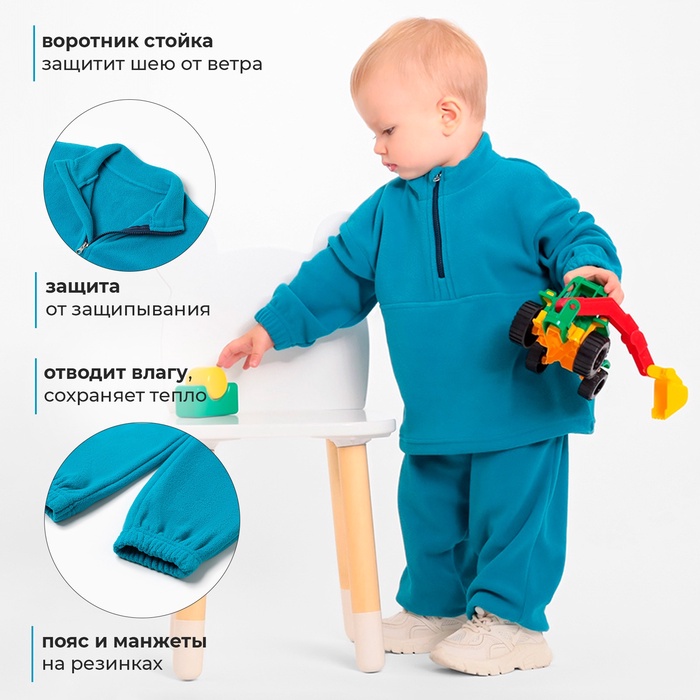Костюм флисовый детский (джемпер и брюки) MINAKU цвет аквамарин, рост 92-98 см — Характеристики