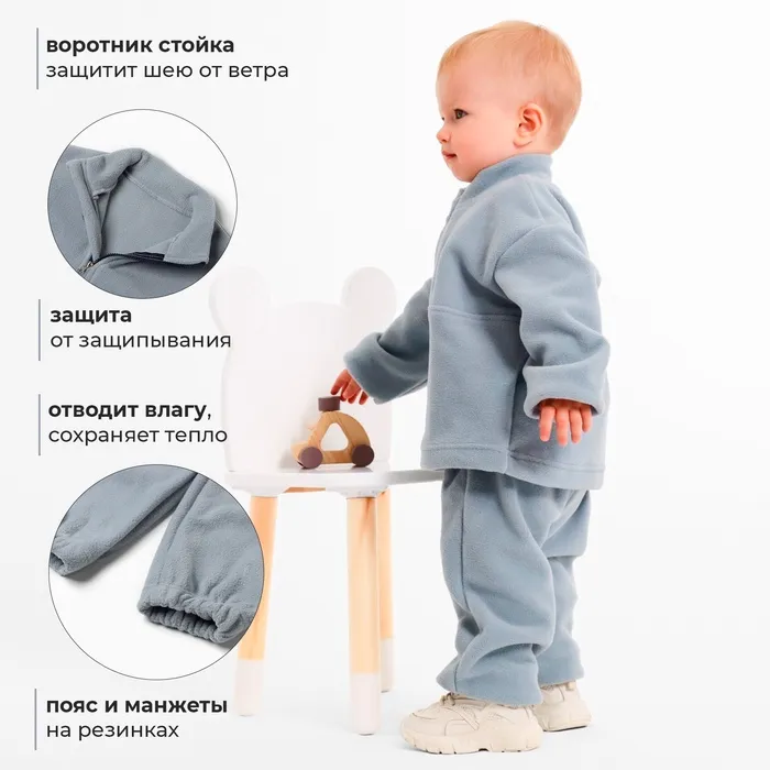 Костюм флисовый детский (джемпер и брюки) MINAKU цвет серый, рост 86-92 см — Характеристики