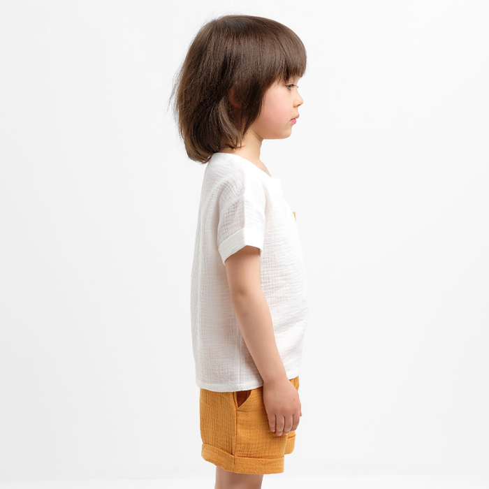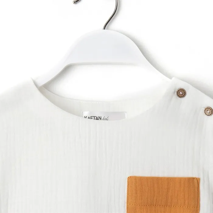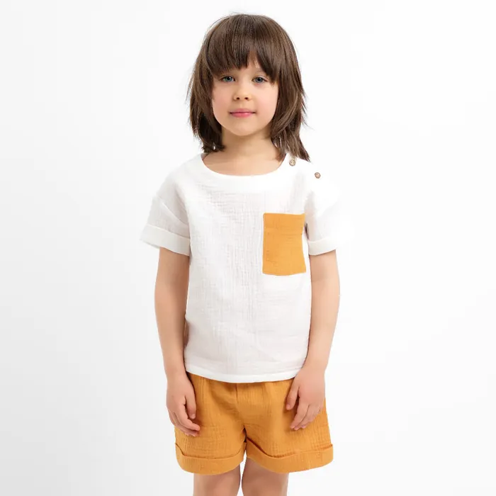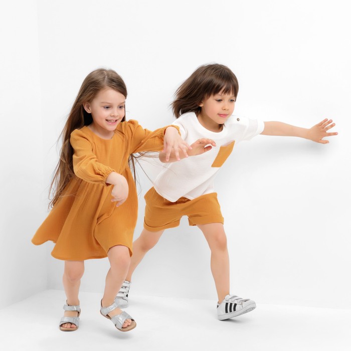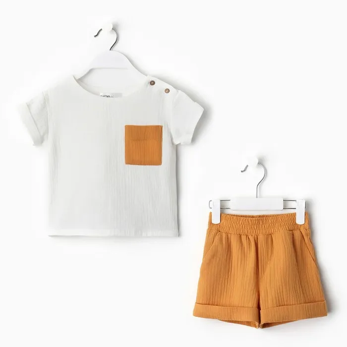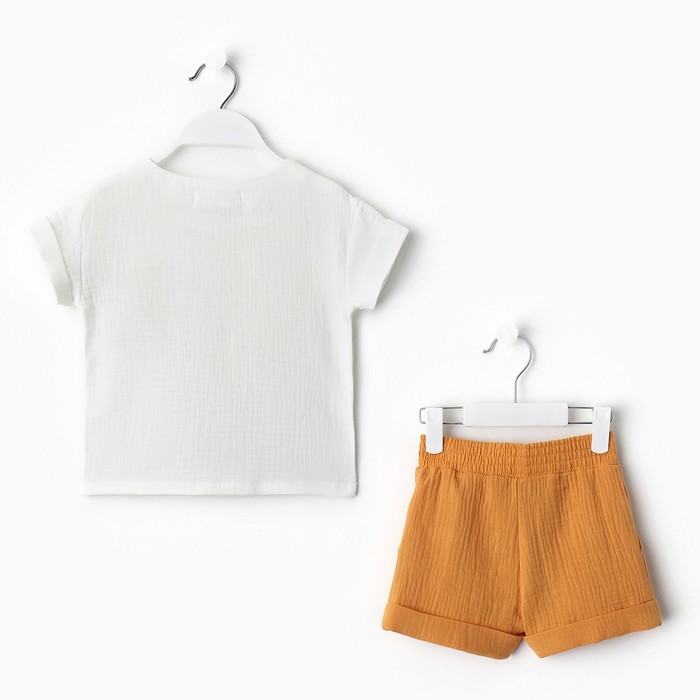 Костюм (футболка и шорты ) детский KAFTAN «Муслин», размер 30 (98-104 см), белый/горчичный — Характеристики
