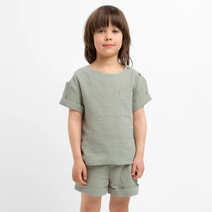 Костюм (футболка и шорты ) детский KAFTAN «Муслин», размер 32 (110-116 см), зелёный — Характеристики