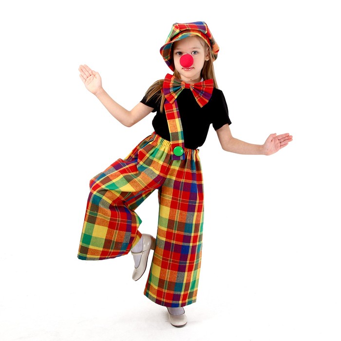 Костюм карнавальный «Клоун с бабочкой», цветная клетка, рост 104-128 см — Характеристики