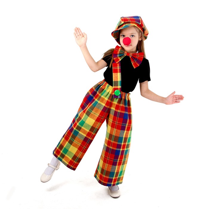 Костюм карнавальный «Клоун с бабочкой», цветная клетка, рост 104-128 см — Характеристики