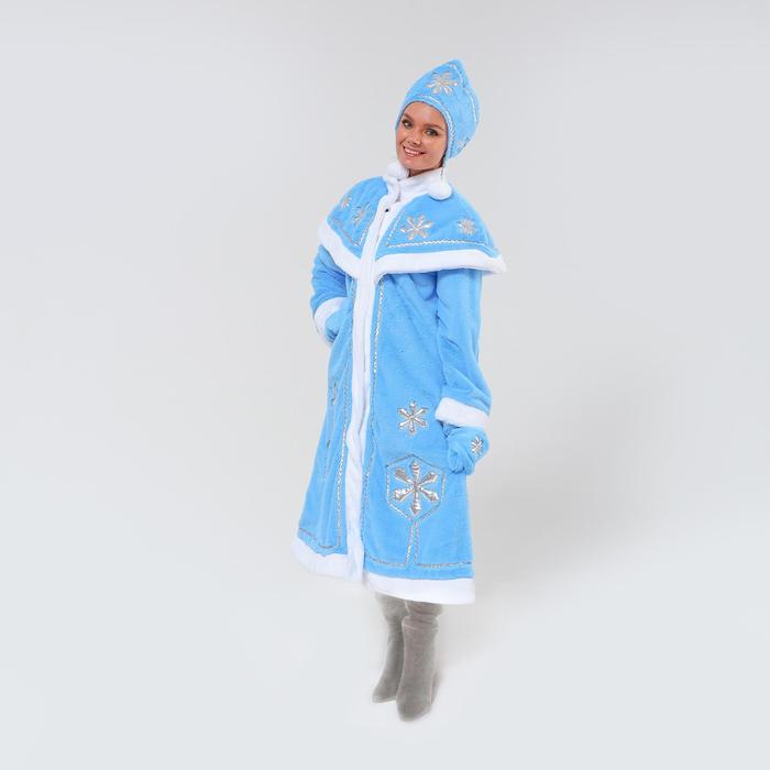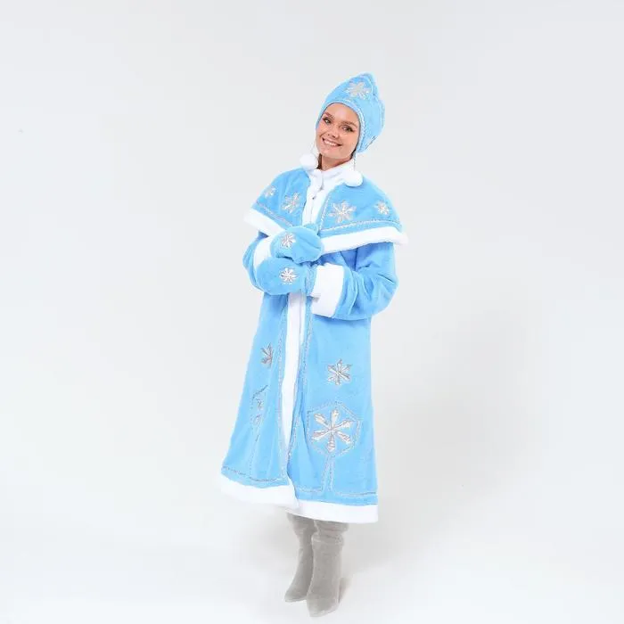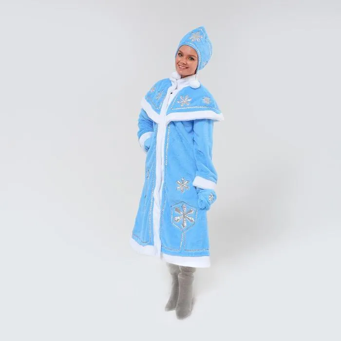 Карнавальный костюм «Снегурочка» — беспроигрышный новогодний образ. Шубка из плюша с узорами из парчи превратит вас в самую стильную внучку Деда Мороза и перенесёт всех вокруг в добрую зимнюю сказку.