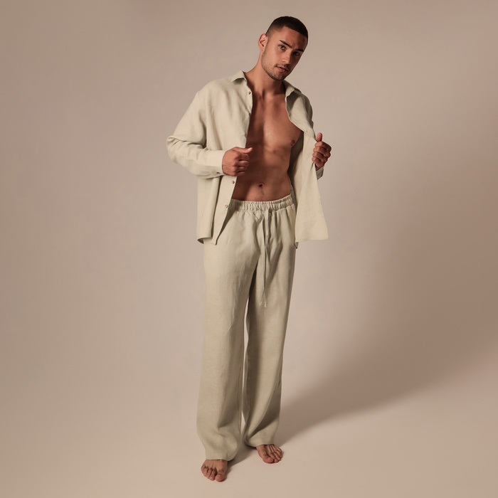 Костюм мужской домашний (рубашка с длинным рукавом и брюки) SL HOME р. M, светло-зеленый — Характеристики
