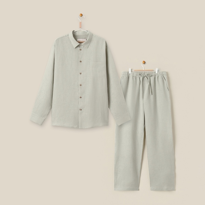 Костюм мужской домашний (рубашка с длинным рукавом и брюки) SL HOME р. XL, светло-зеленый — Характеристики