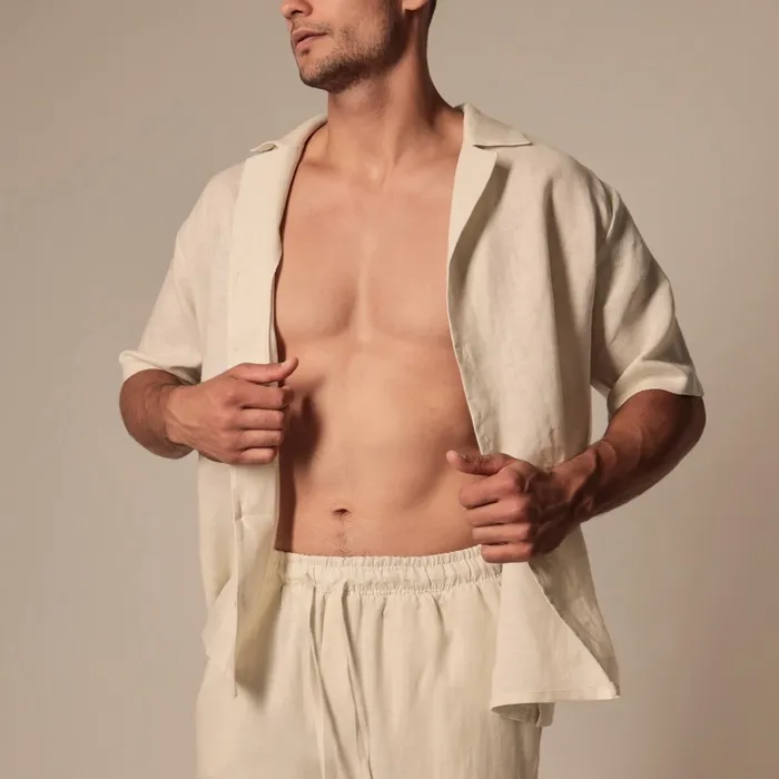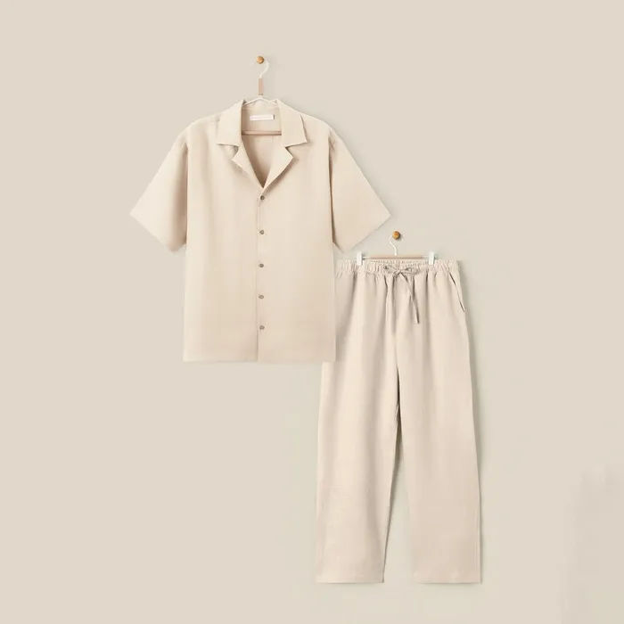 Костюм мужской домашний (рубашка с коротким рукавом и брюки) SL HOME р. M, молочный — Характеристики