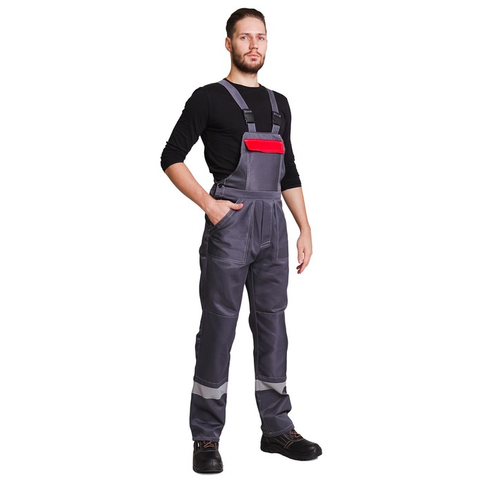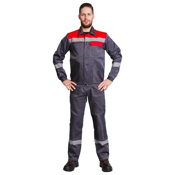 Костюм, п/комбинезон+куртка, хлопок/полиэфир, цвет серый/красный, размер 48-50/170-176 — Характеристики