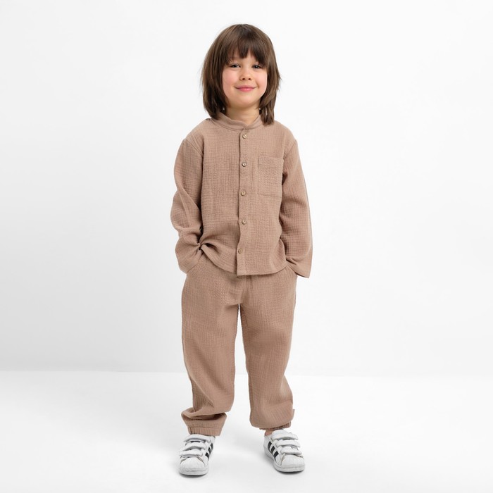Костюм (рубашка и брюки) детский KAFTAN «Муслин», размер 28 (86-92 см), бежевый — Характеристики