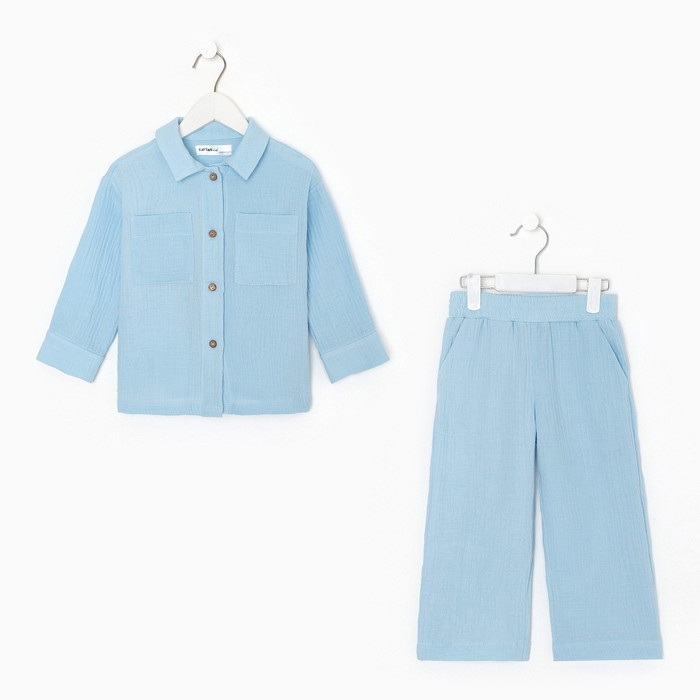 Костюм (рубашка и брюки) детский KAFTAN «Муслин», размер 28 (86-92 см), голубой — Характеристики