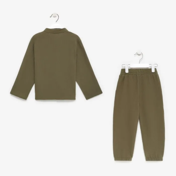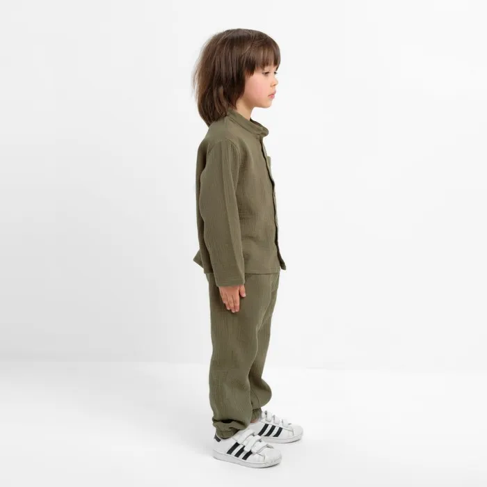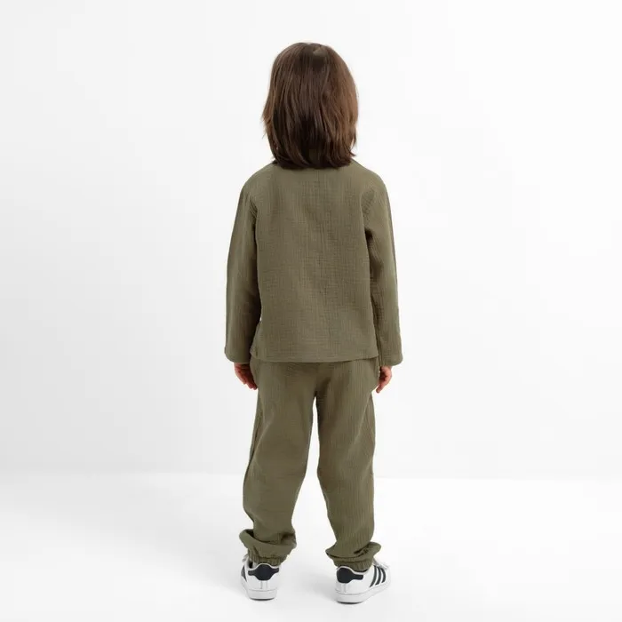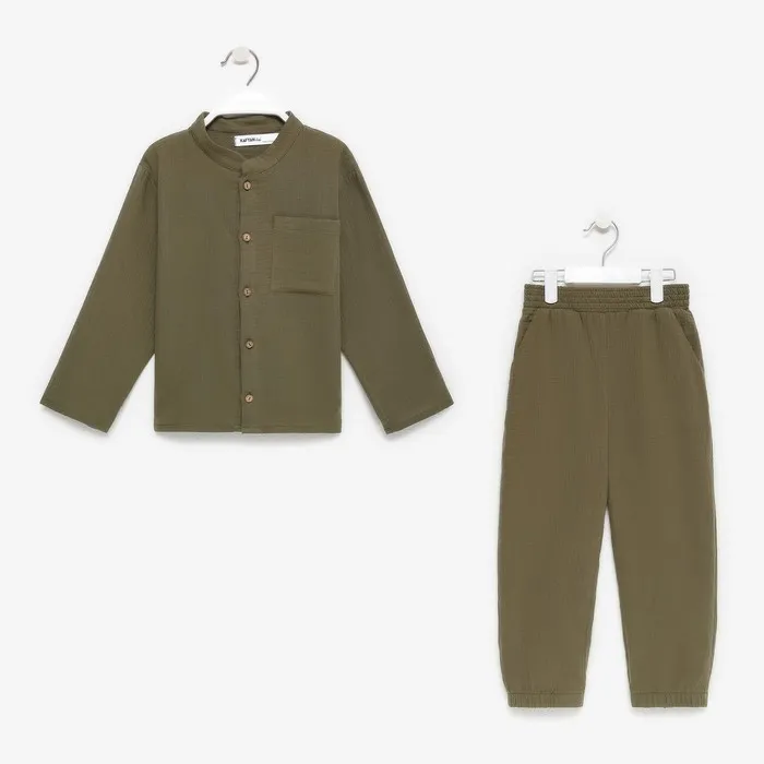 Костюм (рубашка и брюки) детский KAFTAN «Муслин», размер 30 (98-104 см), хаки — Характеристики