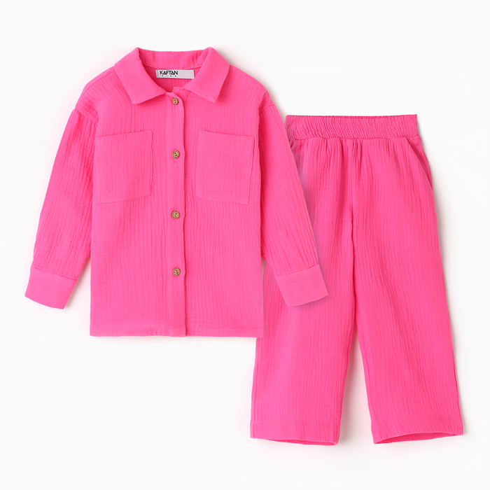 Костюм (рубашка и брюки) детский KAFTAN «Муслин», размер 30 (98-104 см), розовый — Характеристики
