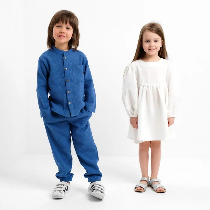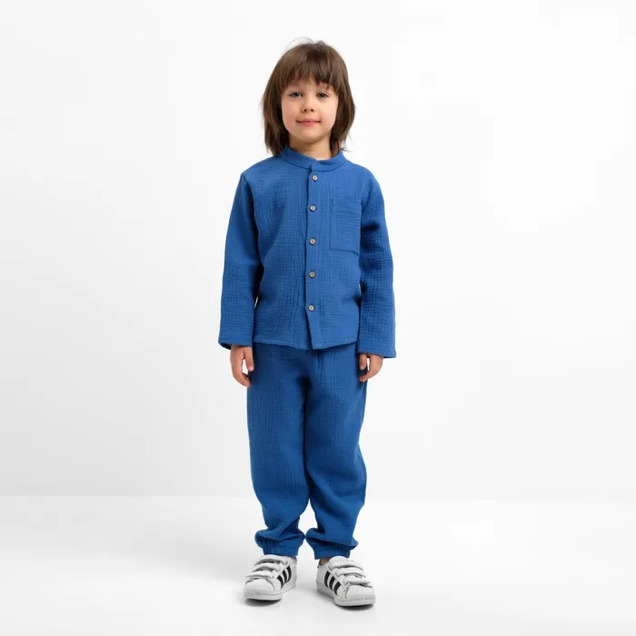 Костюм (рубашка и брюки) детский KAFTAN «Муслин», размер 32 (110-116 см), синий — Характеристики