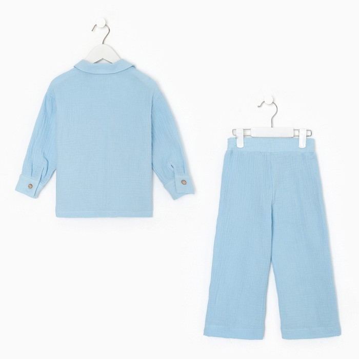 Костюм (рубашка и брюки) детский KAFTAN «Муслин», размер 36 (134-140 см), голубой — Характеристики