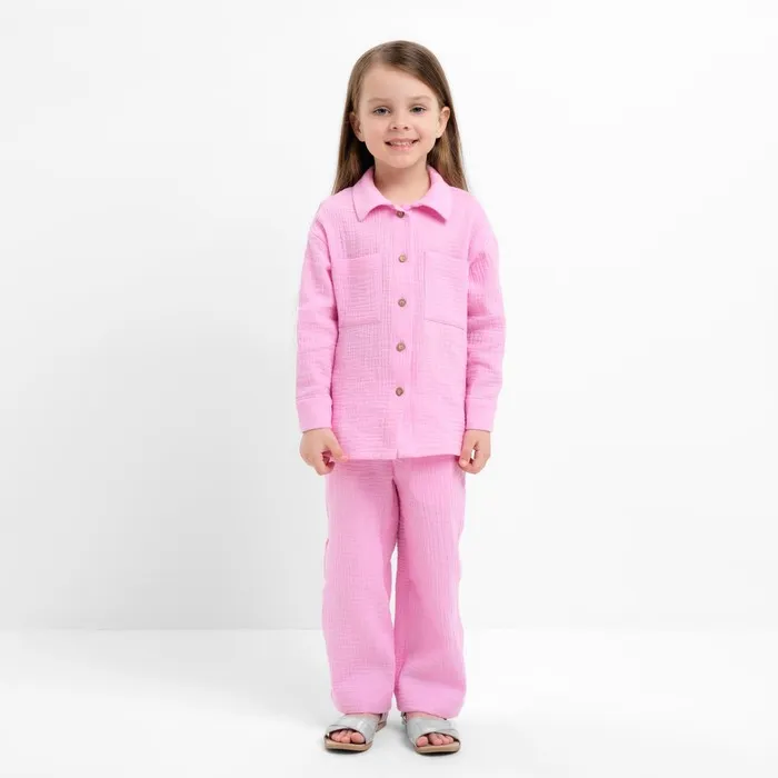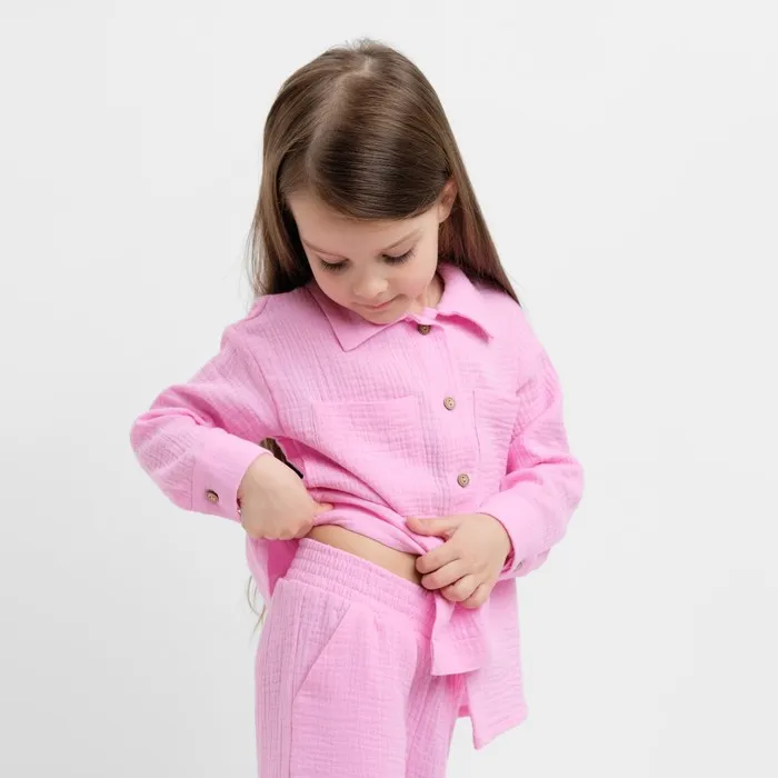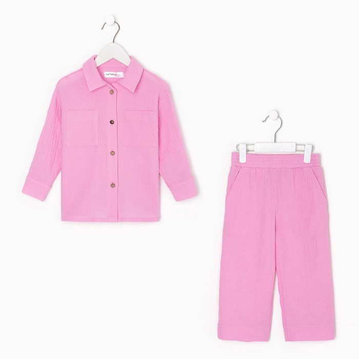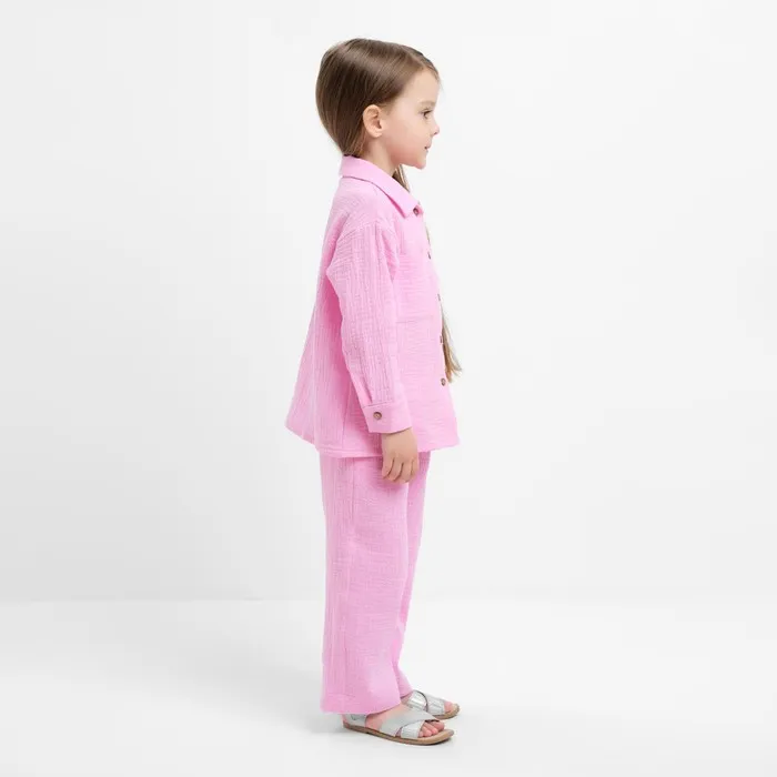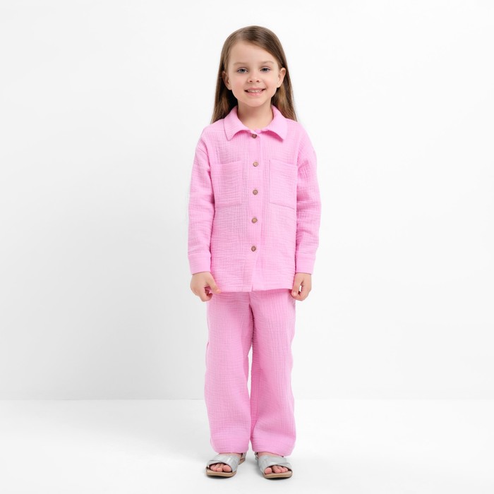 Костюм (рубашка и брюки) детский KAFTAN «Муслин», размер 36 (134-140 см), розовый — Характеристики