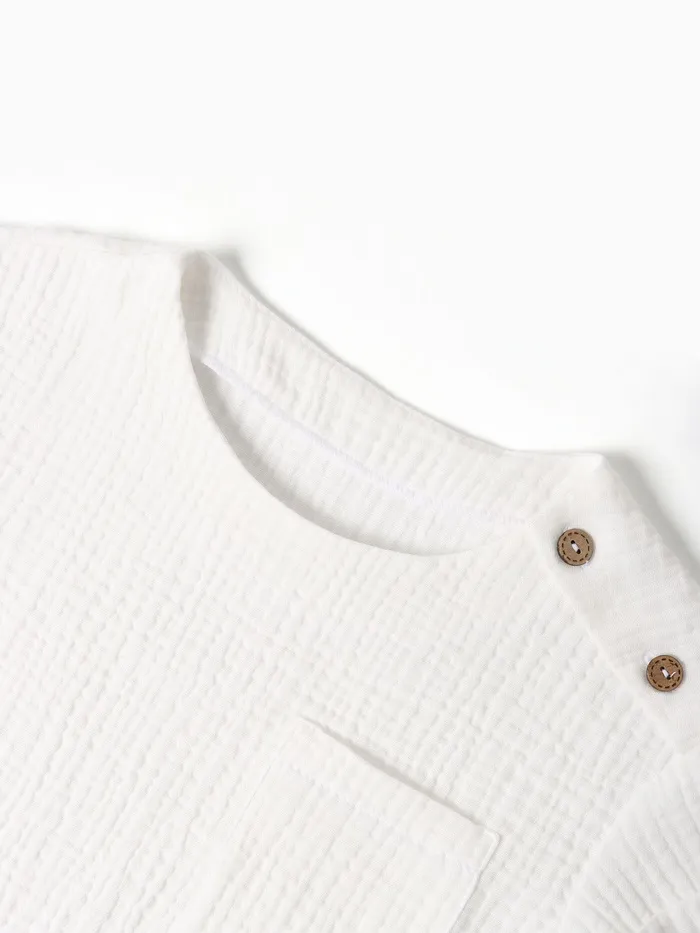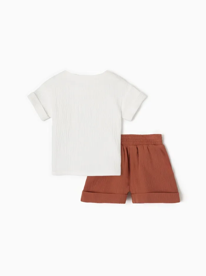 Костюм (рубашка и шорты ) детский KAFTAN «Муслин», размер 26 (80-86 см), белый/коричневый — Характеристики