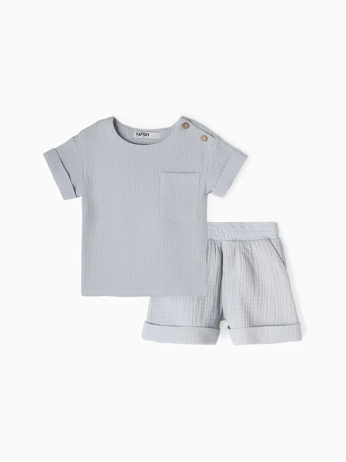Костюм (рубашка и шорты ) детский KAFTAN «Муслин», размер 30 (98-104 см), серый — Характеристики