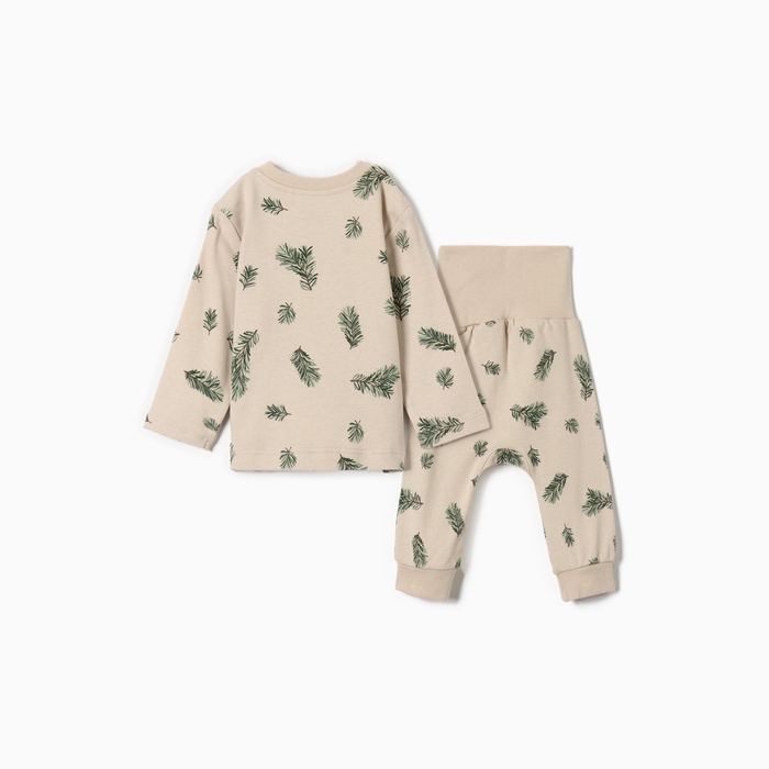Костюм (штанишки и кофточка) Крошка Я "Еловые веточки", рост 62-68 см, бежевый — Характеристики
