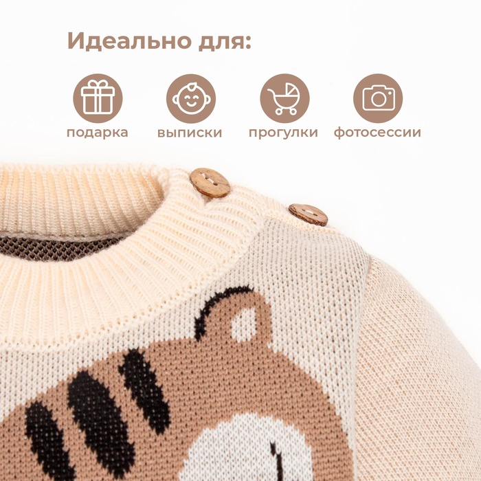 Костюм вязаный Крошка Я «Тигруля», рост 86-92 см, бежевый — Характеристики