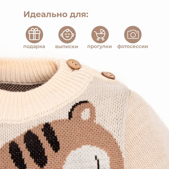 Костюм вязаный Крошка Я «Тигруля», рост 98-104 см, бежевый — Характеристики
