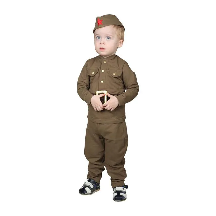 Костюм военного для мальчика: гимнастёрка, галифе, пилотка, трикотаж, хлопок 100%, рост 98 см, 1,5-3 года — Характеристики