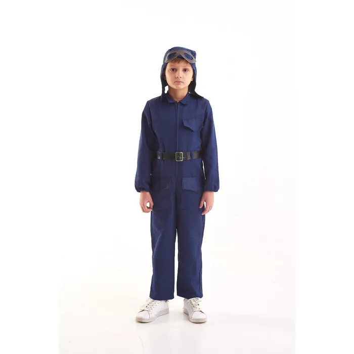 Костюм военного «Лётчик», комбинезон, ремень, шлем, очки, 3-5 лет, рост 104-116 см превратит ребёнка в отважного пилота. Такой образ пригодится для участия юного защитника в театральных постановках, тематических мероприятиях по случаю Дня Победы, 23 Февраля и других военных праздников.