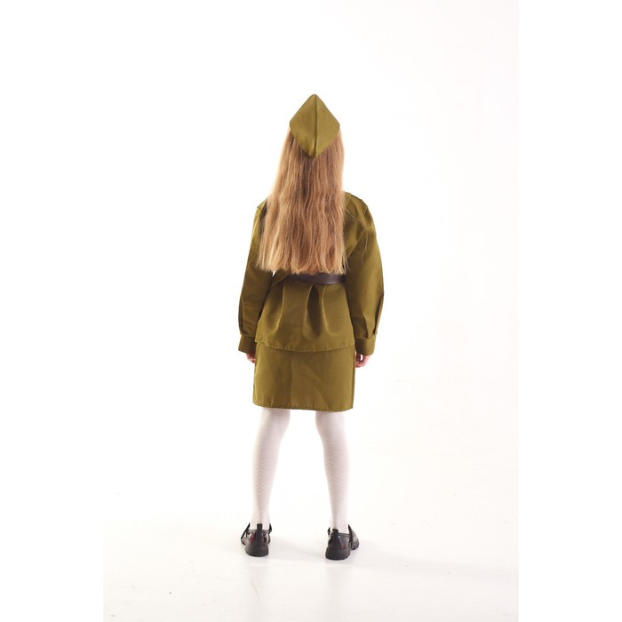Костюм военного «Санитарка» для девочки, 3-5 лет рост 104-116 см превратит юную леди в отважную героиню, спасающую жизни на поле боя. Комплект стилизован под форму времён Второй мировой, чтобы максимально передать атмосферу боевых дней.
