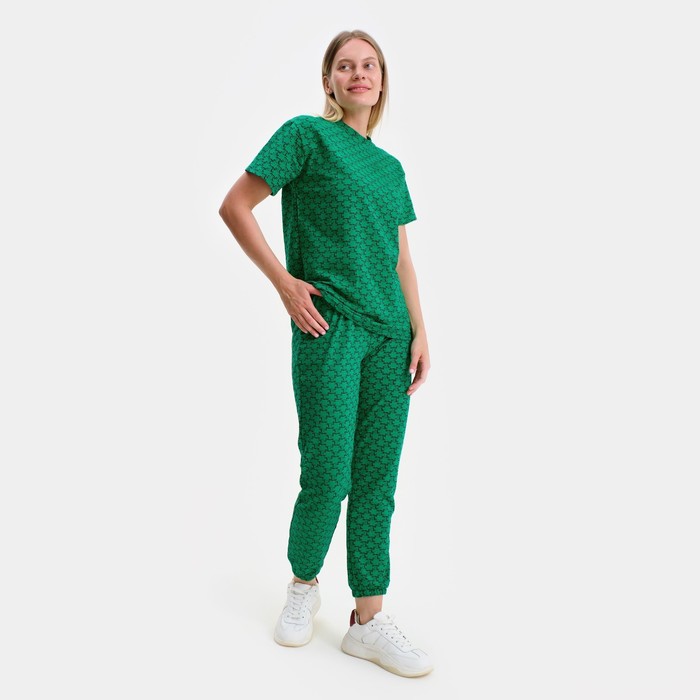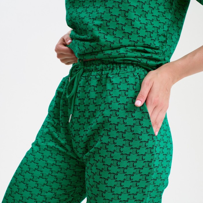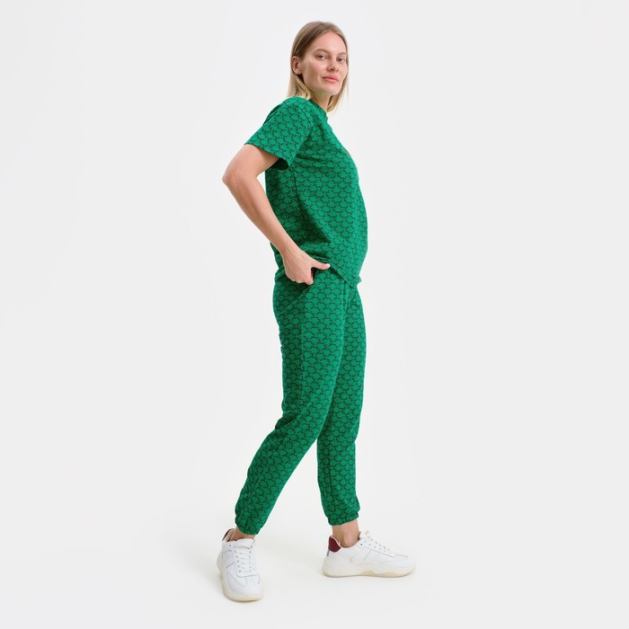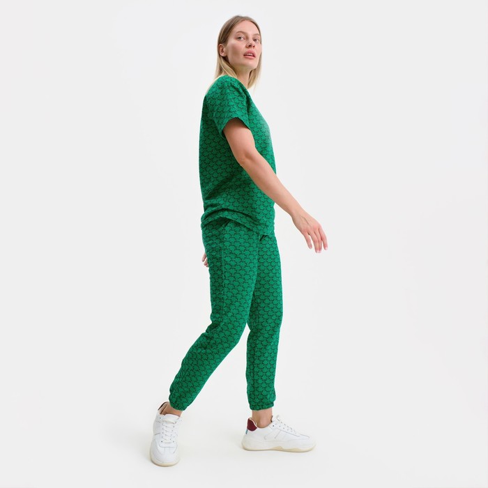 Костюм женский (футболка, брюки), цвет зелёный, размер one size (44-48)