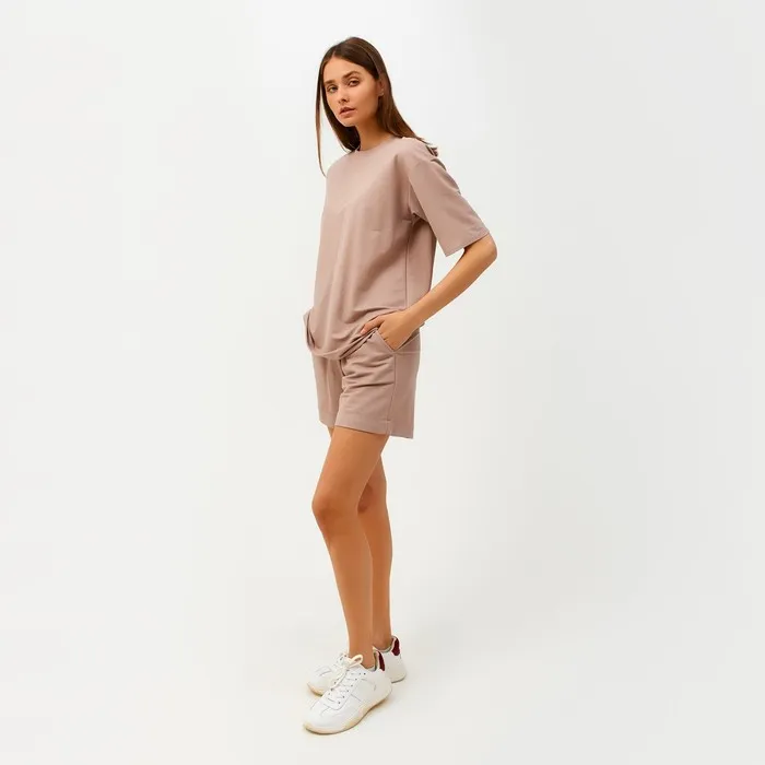 Костюм женский (футболка, шорты) MINAKU: Casual collection цвет бежевый, размер 52 — Характеристики