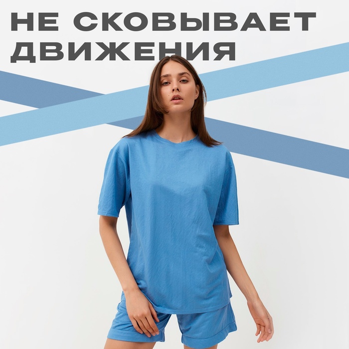 Костюм женский (футболка, шорты) MINAKU: Casual collection цвет голубой, размер 50 — Характеристики