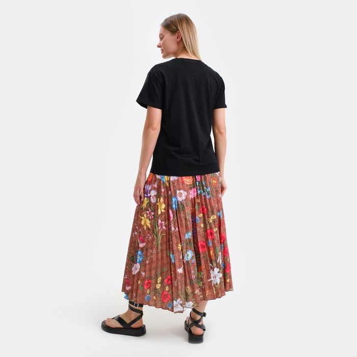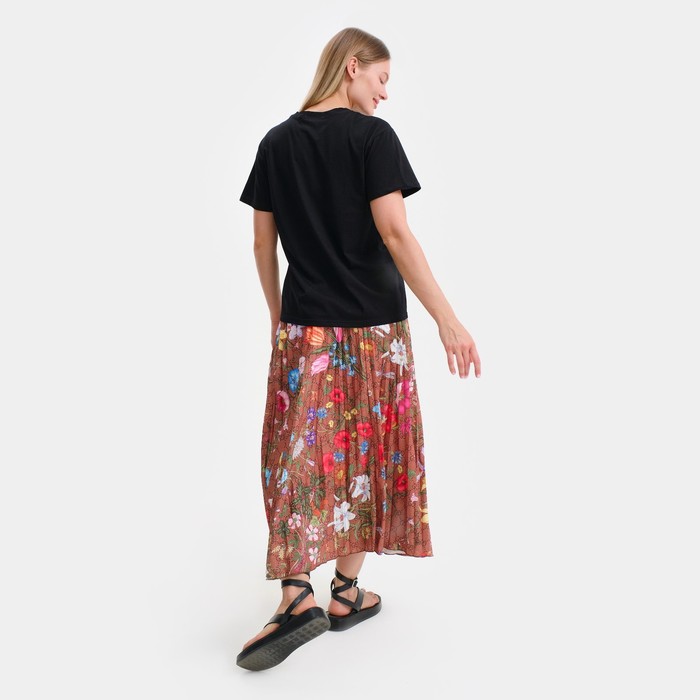 Костюм женский (футболка/юбка), цвет черный/коричневый, размер ONE SIZE