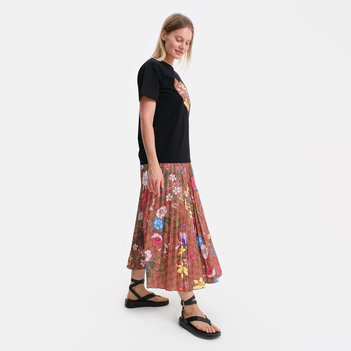 Костюм женский (футболка/юбка), цвет черный/коричневый, размер ONE SIZE — Характеристики