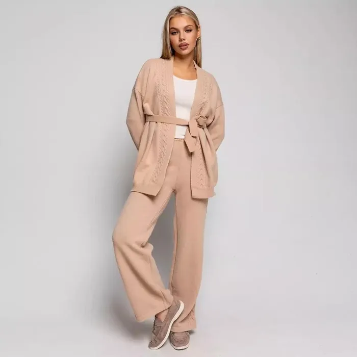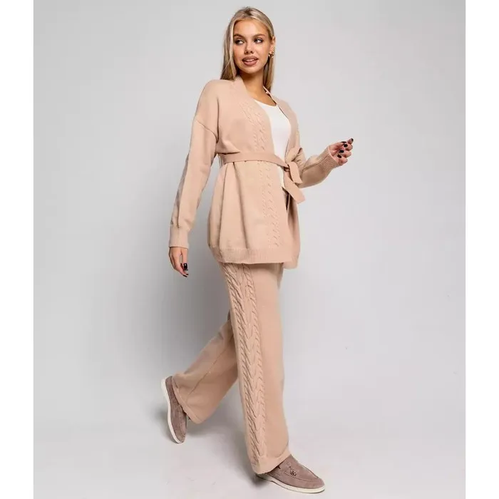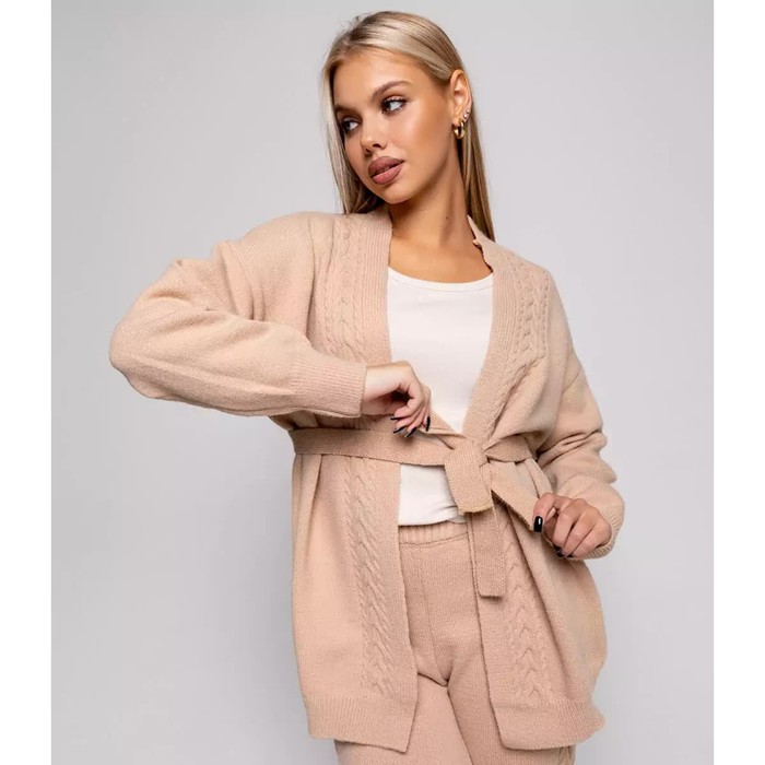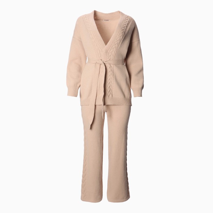 Костюм женский (кардиган/брюки), цвет бежевый, размер 42-46 (ONE SIZE)