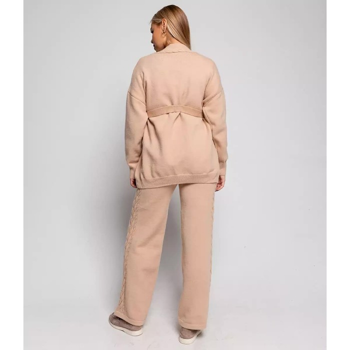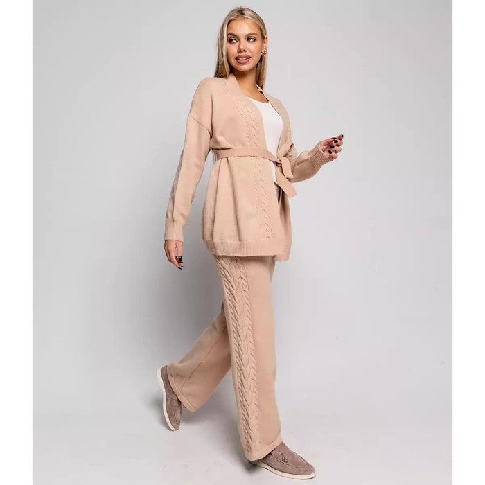 Костюм женский (кардиган/брюки), цвет бежевый, размер 42-46 (ONE SIZE) — Характеристики