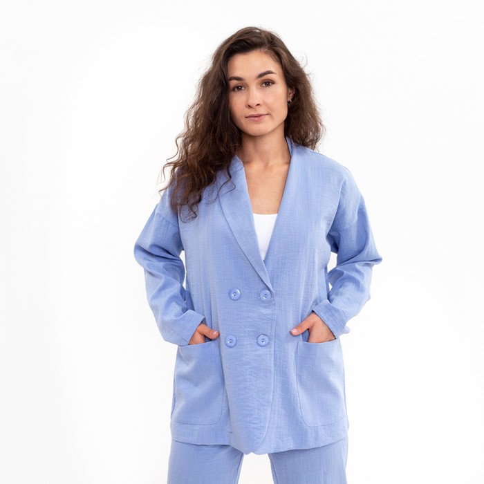 Костюм женский повседневный (жакет, брюки), размер 42, голубой — Характеристики