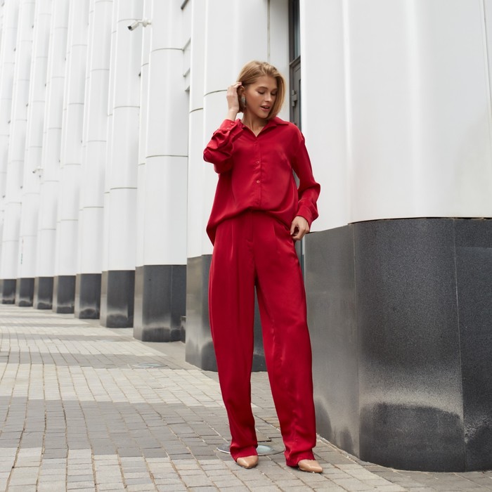 Костюм женский (рубашка, брюки) MINAKU: Silk pleasure цвет красный, размер 42 — Характеристики