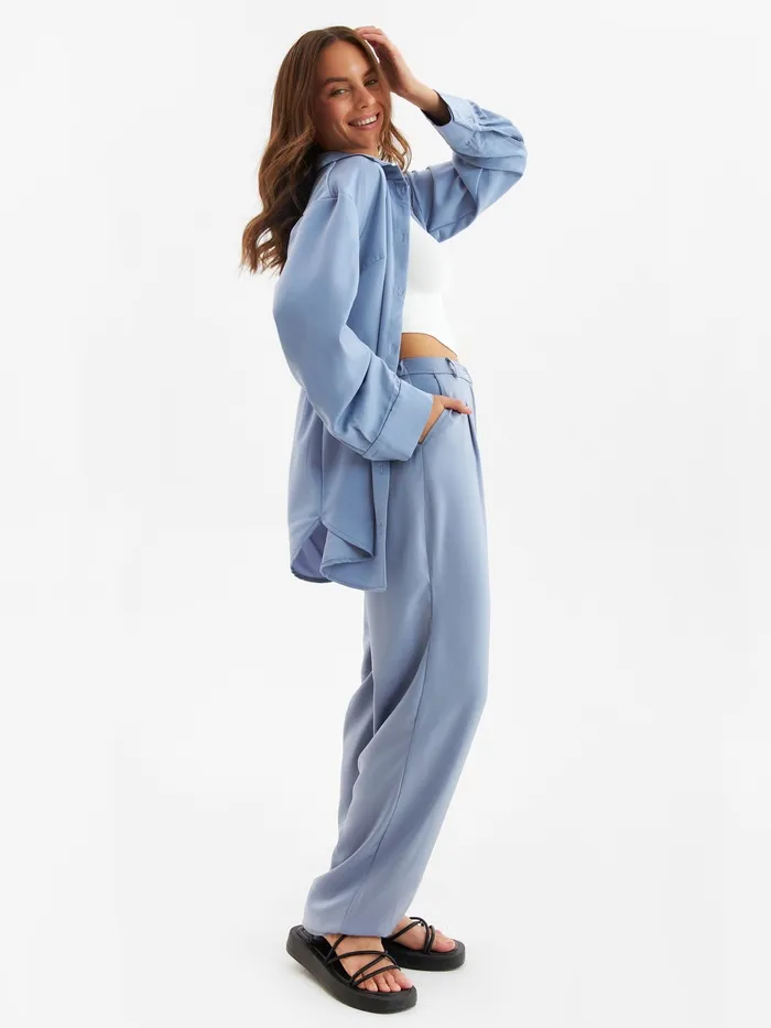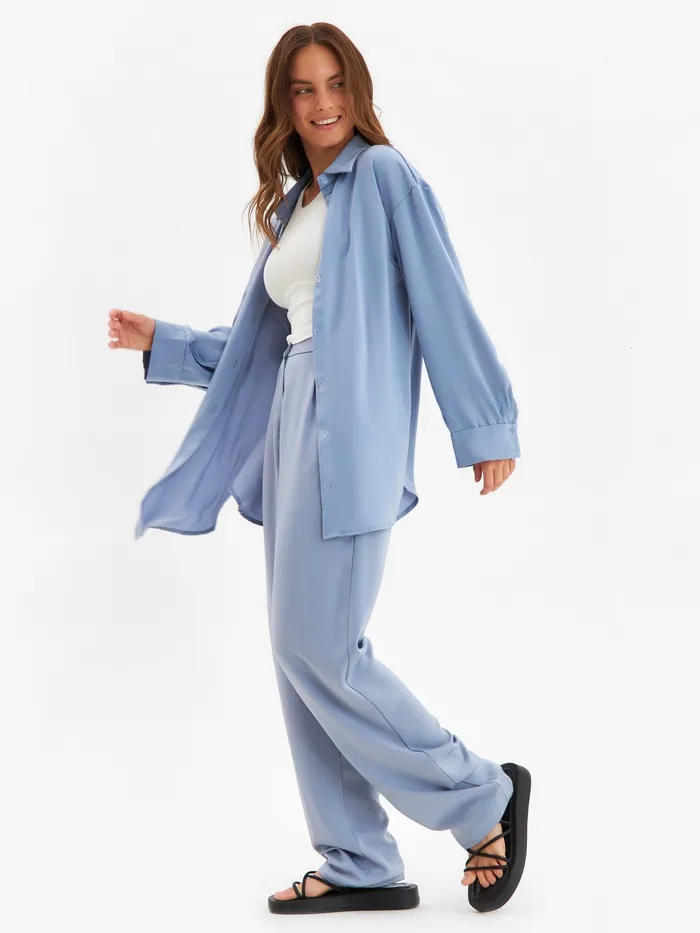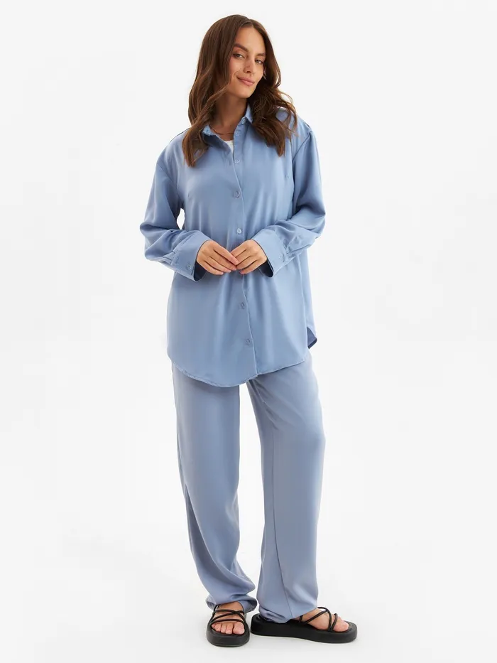 Костюм женский (рубашка, брюки) MINAKU: Silk pleasure цвет серо-голубой, размер 44 — Характеристики